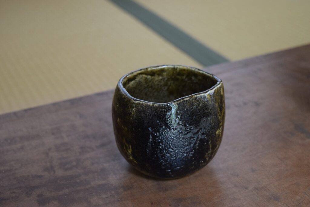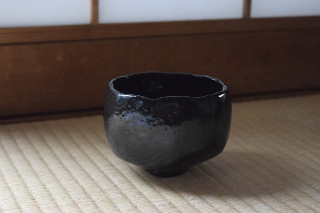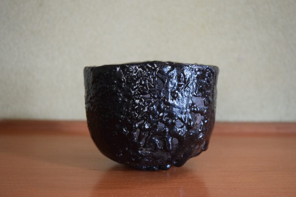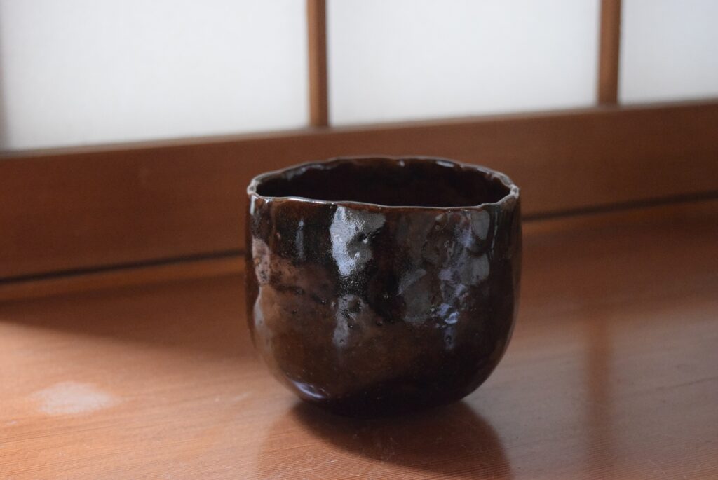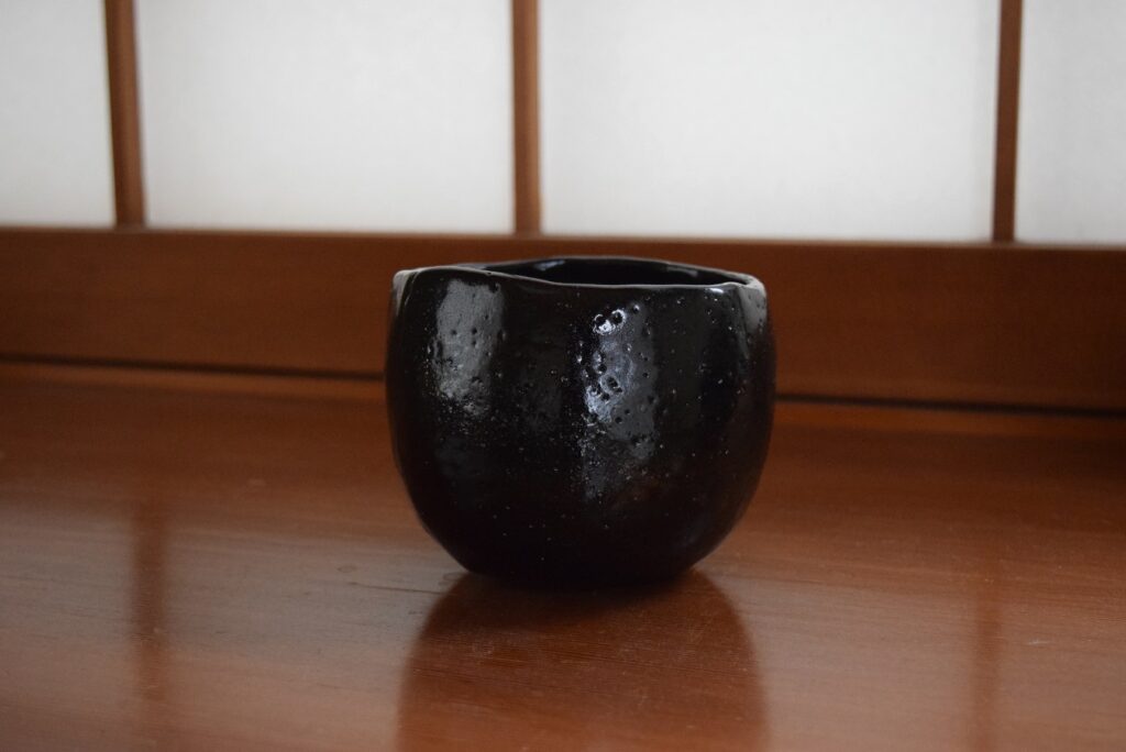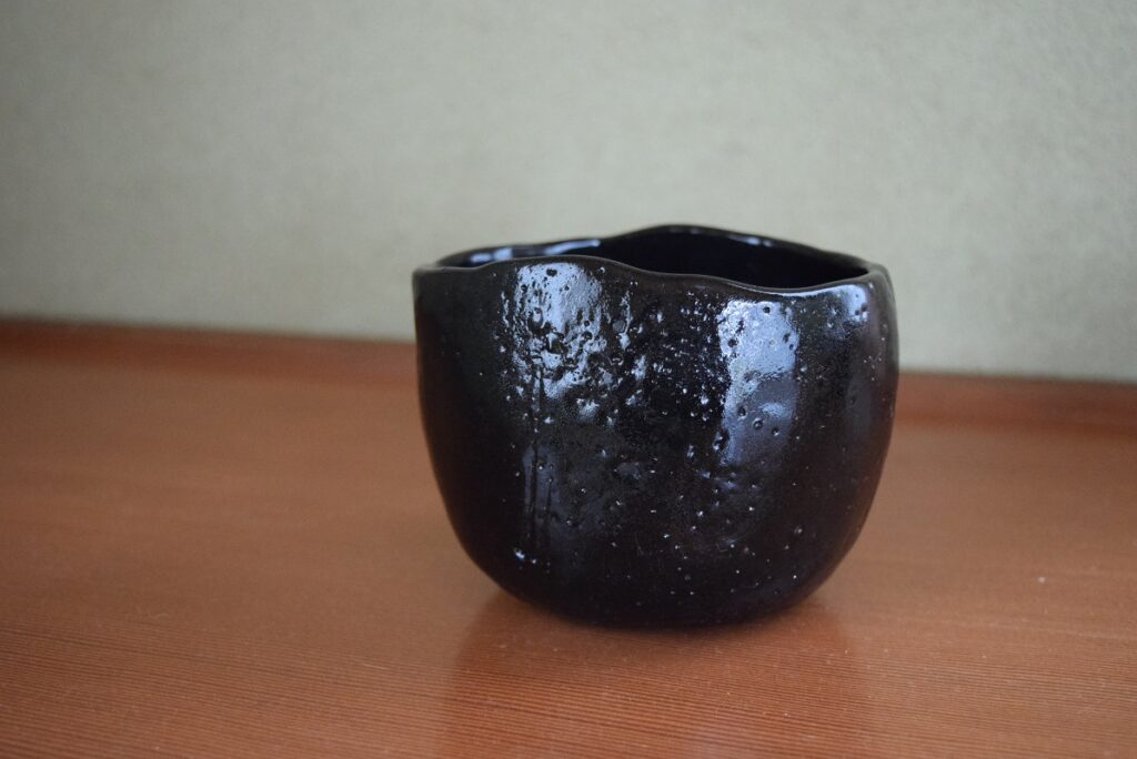 一見、シンプルな黒茶碗だが、持って見ると包み込まれるような感触がある渋い茶碗