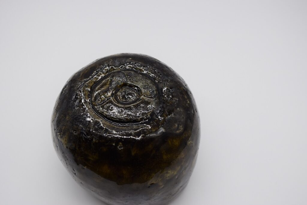 織部風の深緑ぽく見えるが、実は飴釉薬を使ったもの